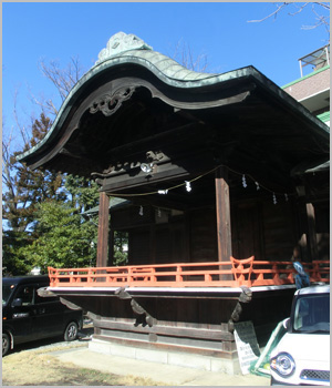 神楽殿については記録がなく詳細は分からないが、相当歴史のある建物と見受けられる。 神楽殿のある神社は一般に大きい神社又は格式の高い神社と言われている。当社も1300年の歴史を持つ由緒ある古社なので代々神楽の奉納をしてきたと思われる。 現在は、春の例大祭に神楽の奉納、秋の例大祭で近隣の娘さん方による浦安の舞と宮司以下有志による雅楽の演奏が奉納されている。