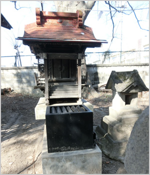境内に詳細不明の祠が存在する。断定はできないが以下の資料から「妙義社」ではないかと推測いたします。 【裏見寒話より】 穴切大明神 穴切村 黒印地 神主 正木内膳 御城より未申の方、田畑の中に在り、 神体素盞鳴尊・大己貴命・少彦名命也、近年又妙義権現を社内に祀りて、託宣などあり 穴切社地の妙義社:神主正木内膳近年建立、毎年三月に祭禮あり、人々新作の木綿を納む ※裏見寒話とは…江戸中期甲府勤番士野田成方が残した地誌
