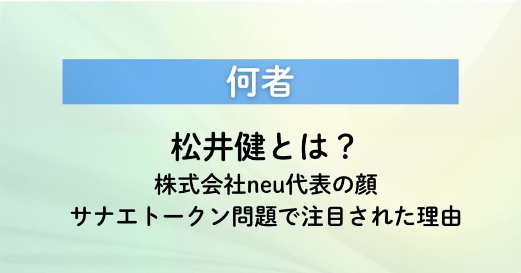 松井健さんの名前が、サナエトークン問題とあわせて注目されています。 今回の件で初めて名前を見た人にとっては、まずどんな立場の人物なのかが気になったところでした。 あわせて、株式会社neuの代表として出てきた点や、問題のかなり近い場所で名前が出... -