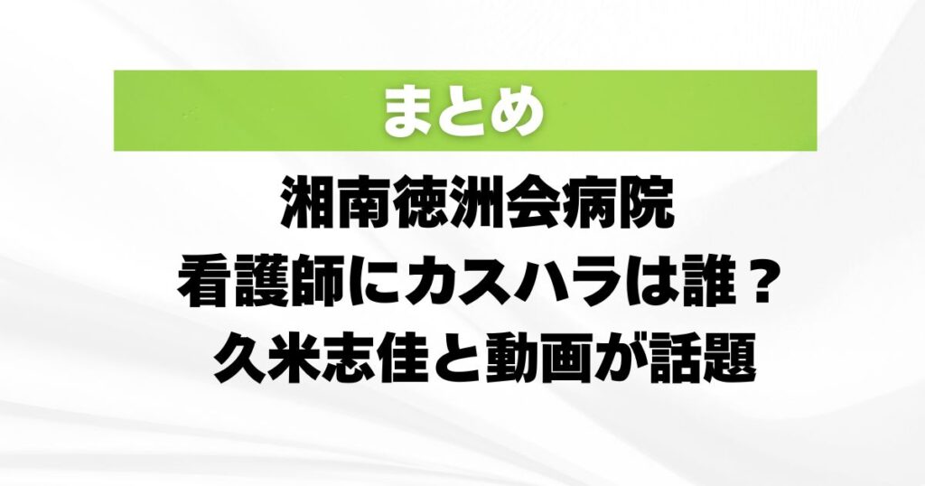 【湘南徳洲会病院】看護師にカスハラしたのは誰?久米志佳と話題の動画内容まとめ