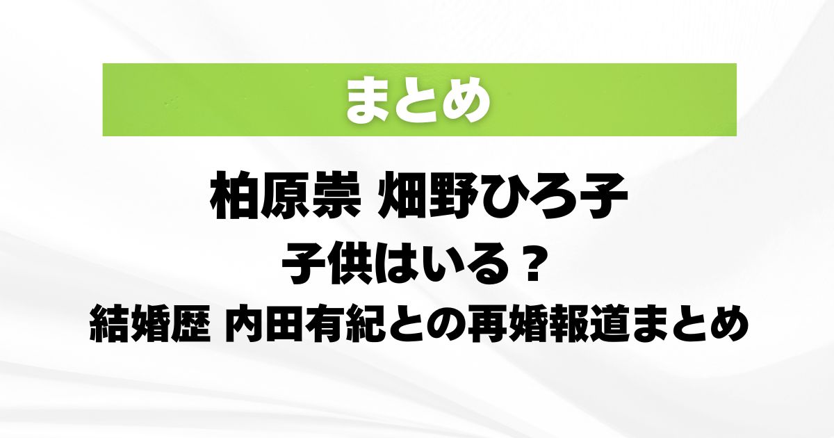 この点については、柏原崇さんと元妻・畑野ひろ子さんの間に子供がいるという公表情報は見当たりませんでした。